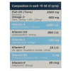 - دوز بالای DHA/EPA: در هر ۱۰ میلیلیتر ۵۰۰ میلیگرم DHA و ۱۰۰ میلیگرم EPA برای تقویت شناخت، بینایی و سلامت قلب.