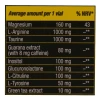 - فرمولاسیون کامل: ال–آرژینین، تورین، ال–تیروزین، ال–سیترولین، اینوزیتول، گلوکورونولاکتون و عصارههای گوارانا و چای سبز.
