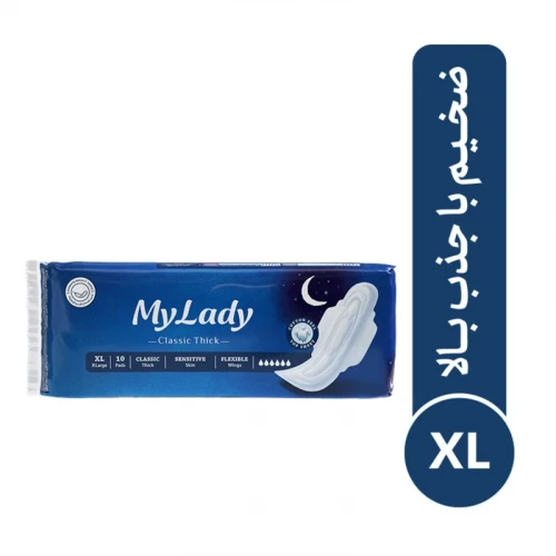 نوار بهداشتی بالدار ضخیم شب مای لیدی مدل Classic Navy Blue سایز خیلی بزرگ بسته 10 عددی