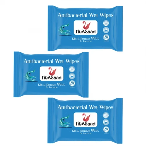 دستمال مرطوب نیوساد مدل AntiBacterial-W3 سه بسته 28 عددی