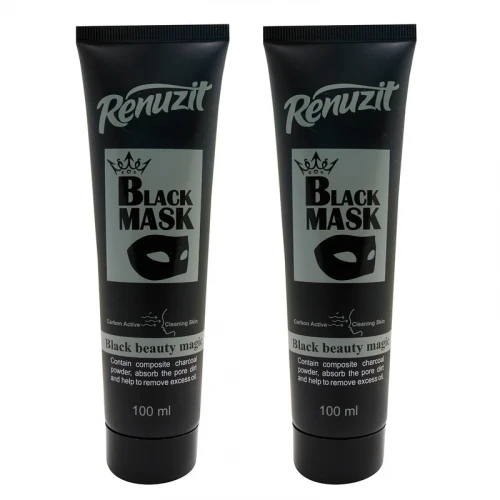 ماسک صورت رینو زیت مدل Black mask carbon active حجم 100 میلی لیتر مجموعه 2 عددی